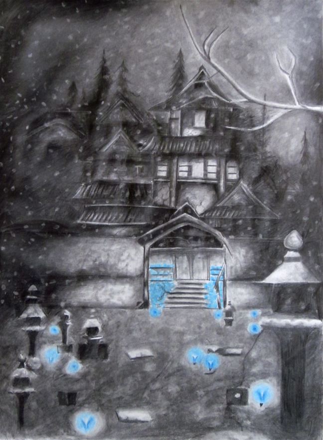 toriis que conectavam a mansão principal até uma construção menor que parecia